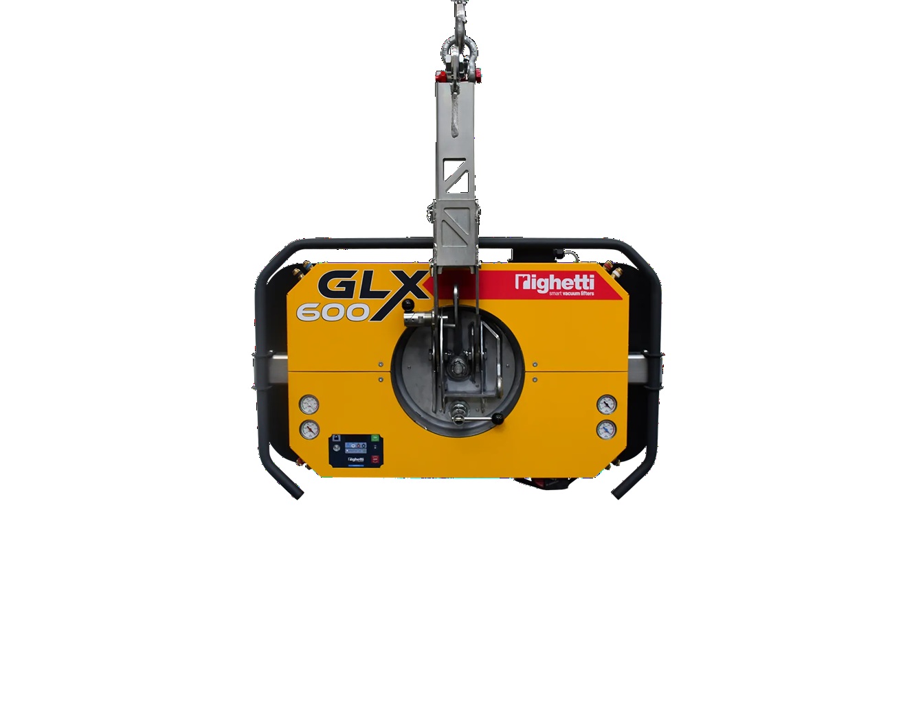 GLX600 fra Righetti er en batteridrevet vakuumløfter for glass, utviklet for bruk sammen med minikraner og annet løfteutstyr med begrenset løftekapasitet. Den kompakte konstruksjonen og lave egenvekten gjør GLX600 godt egnet for håndtering av glassplater på byggeplass og i montasjesituasjoner.