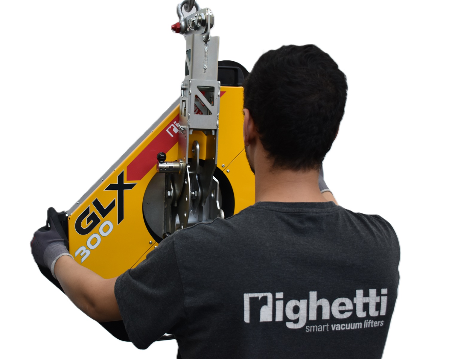 GLX600 fra Righetti er en batteridrevet vakuumløfter for glass, utviklet for bruk sammen med minikraner og annet løfteutstyr med begrenset løftekapasitet. Den kompakte konstruksjonen og lave egenvekten gjør GLX600 godt egnet for håndtering av glassplater på byggeplass og i montasjesituasjoner.