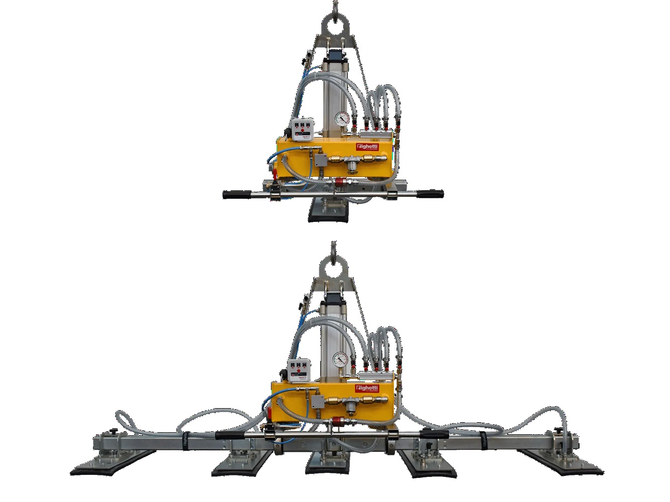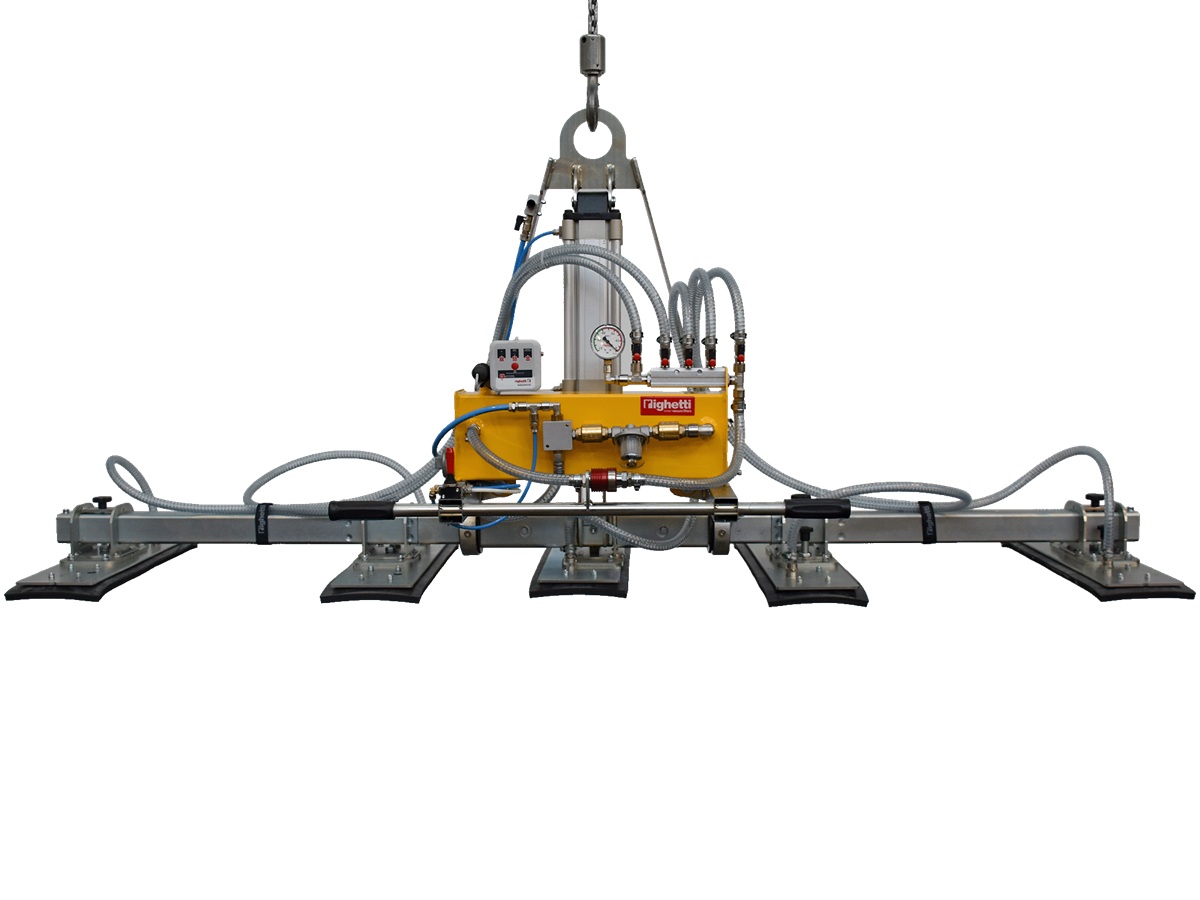 P5A-KR-PR fra Righetti er utviklet for sikker og effektiv håndtering av kjøkkenbenkeplater, steinplater og mindre utskjæringer i ikke-porøse materialer. Vakuumløfteren er konstruert for både horisontalt og vertikalt løft og egner seg godt i produksjon og montasje der plateformatene varierer.