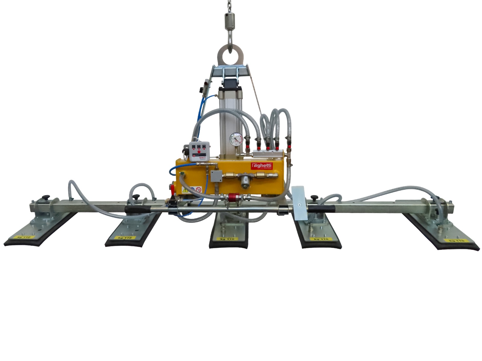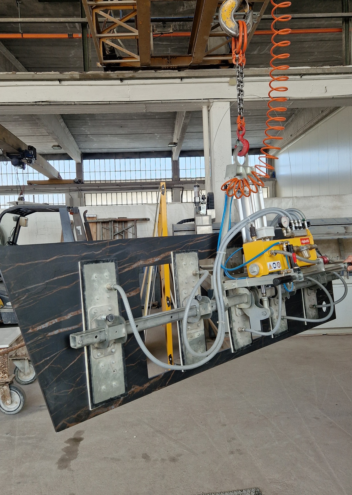 Righetti P5A550K er en pneumatisk vakuumløfter utviklet for håndtering av kjøkkenbenkeplater og andre lange steinplater i naturstein, keramikk og tilsvarende ikke-porøse materialer. Vakuumløfteren benyttes som løfteåk sammen med kran, truck eller annet egnet løfteutstyr og er beregnet for både horisontal og vertikal håndtering.