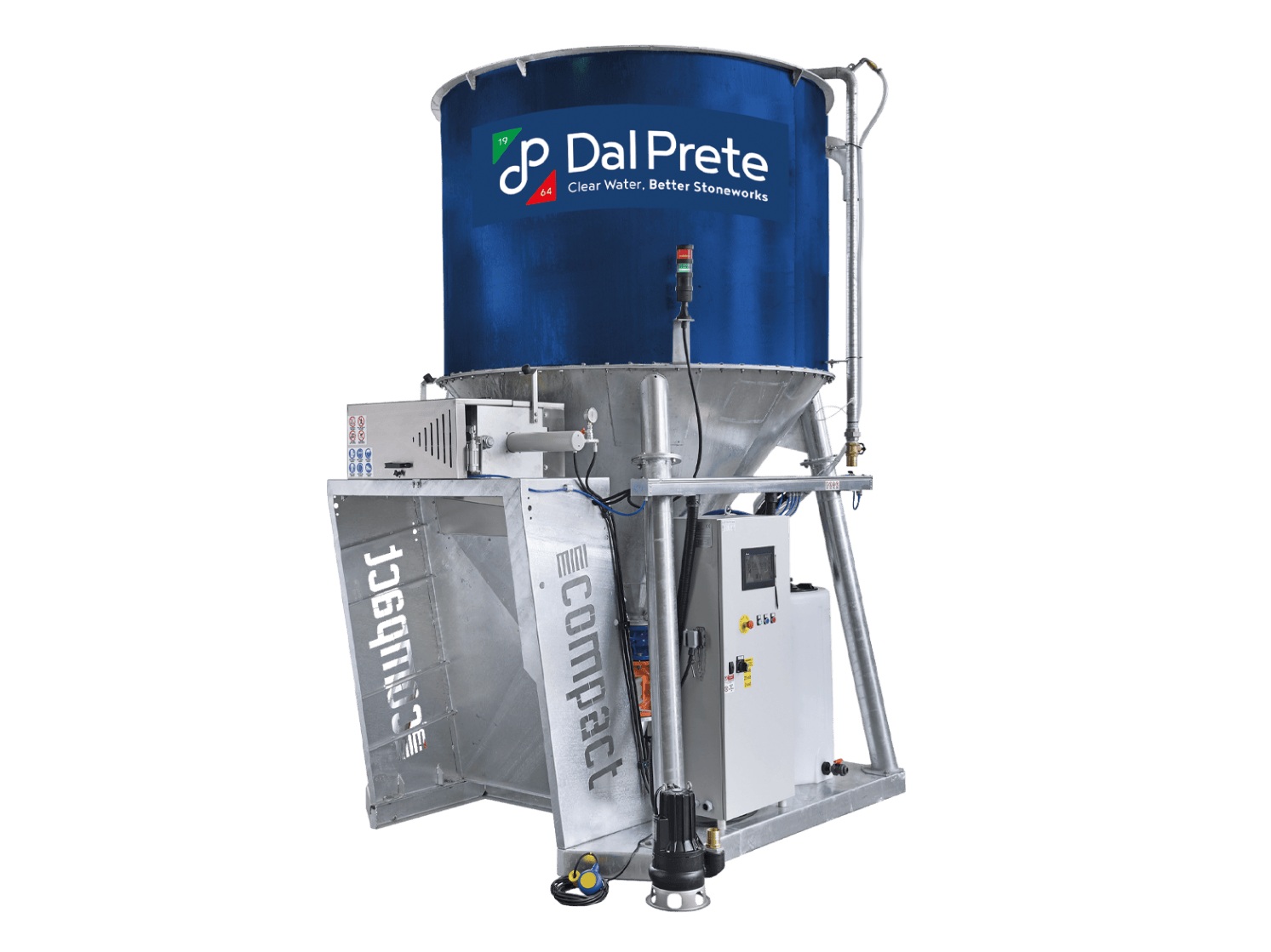 Dal Prete Mini Compact M 2.1 er utviklet som et kompakt og driftssikkert vannrensesystem for rensing og gjenbruk av prosessvann fra både glass- og steinbearbeiding. Systemet er spesielt godt egnet for mindre produksjonsmiljøer og enkeltmaskiner, der det stilles krav til stabil drift i et plassbesparende format.